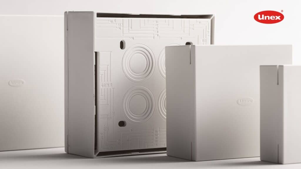 Unex sigue innovando y aumentando su apuesta por la gestión integral del ciclo de vida de los materiales que usan. Esta vez, presenta dos lanzamientos que marcan un avance en el uso de termoplásticos técnicos con origen reciclado y en el diseño de sistemas de gestión de cableado seguros: la renovación de la gama de Cajas de conexiones 40 y la ampliación de las Bandejas aislantes 66, ambas fabricadas en U48X.