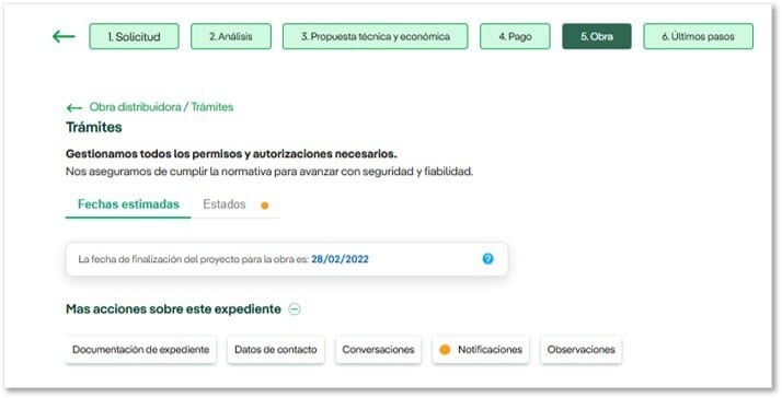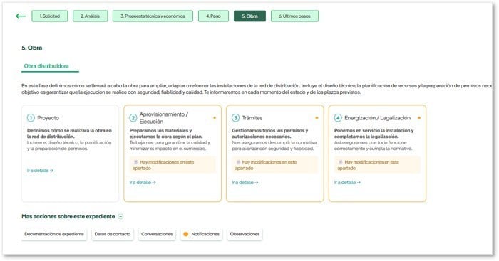 • Posibilidad de seguir la evolución de cada obra y subir la documentación requerida en cada etapa.