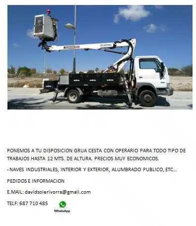Ponemos a disposición de otras empresas grúa cesta con operario para todo tipo de trabajos.