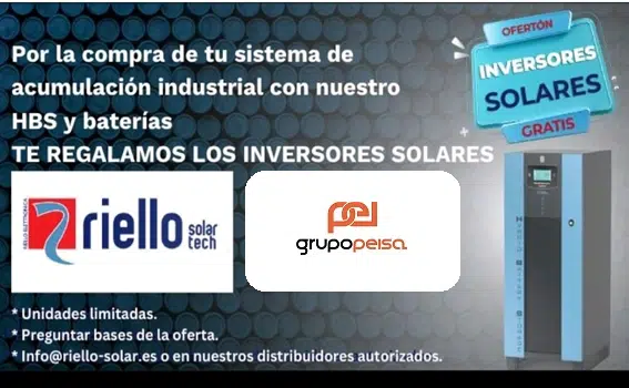 Durante el mes de marzo, por la compra de un sistema de acumulación industrial con HBS y baterías Riello, ¡¡llévate los inversores solares gratis!! Promoción