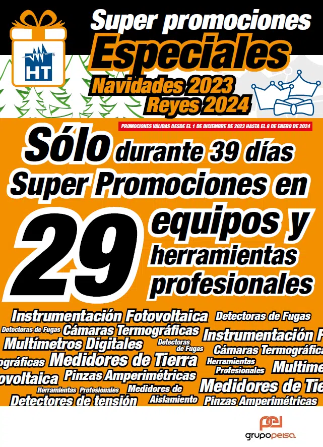 Desde el 1 de diciembre 2023 al 8 de enero 2024, ¡¡aprovecha las Súper Promociones en equipos de medida y herramientas profesionales HT Instruments!! *No